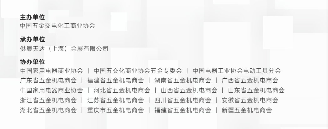 此次展会由中国国际五金博览会主办,供辰天达(上海)会展有限公司承办,并得到了众多行业协会和商会的支持与合作。这包括中国家用电器商业协会、中国五交化商业协会五金专委会、中国电器工业协会电动工具分会等多家权威机构。这些强大的后盾为展会的成功举办提供了坚实的保障。